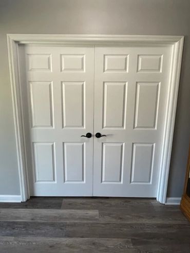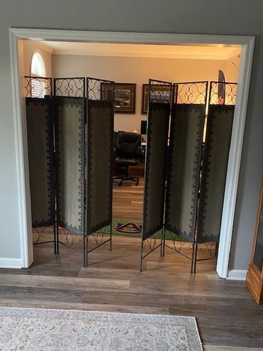 French doors offer a stylish way to add privacy to this family's home office
